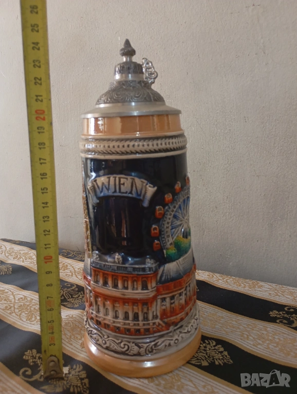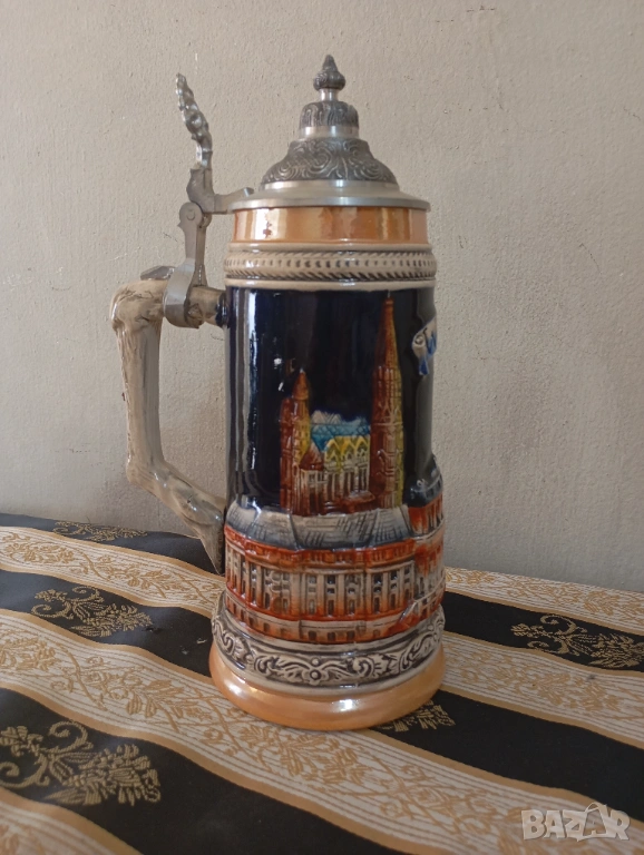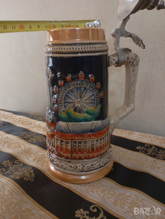 порцеланова чаша с релефни декорации, метален капак