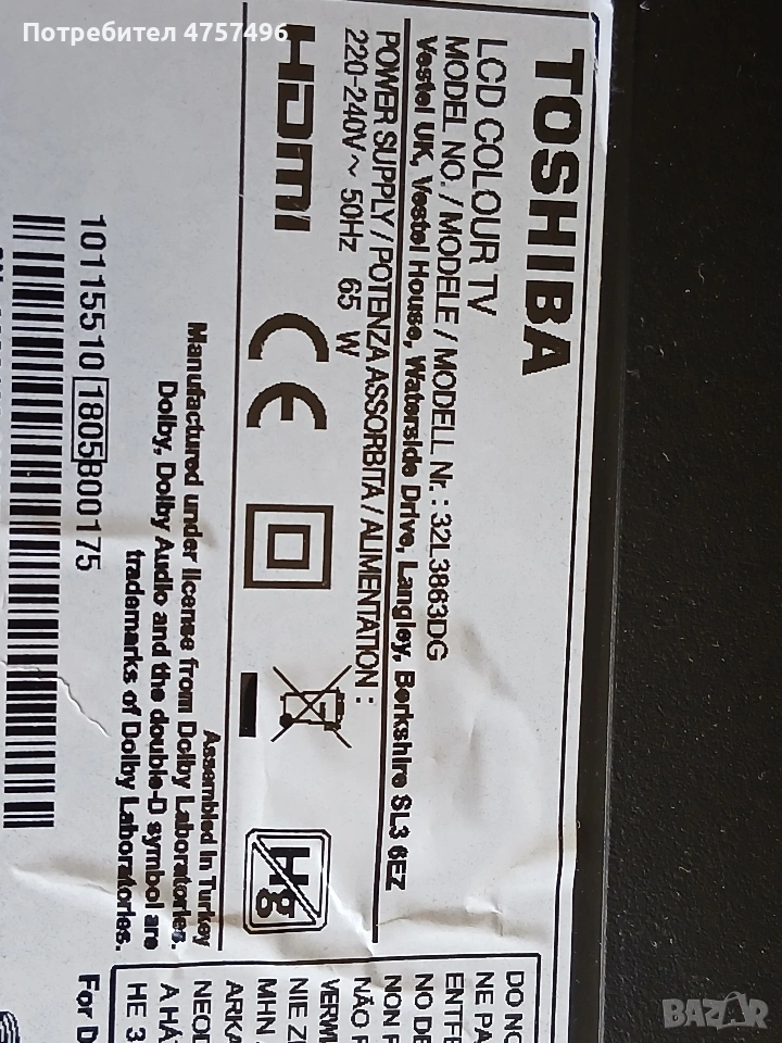 Телевизор toshiba 32l3863dg на части → Обява 53752970