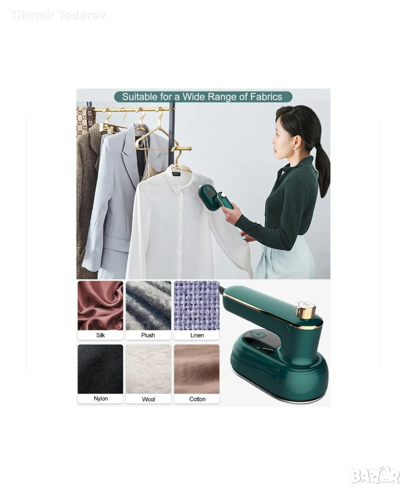 【Преносима и компактна парна ютия】: Преносимата парна ютия има сгъваема дръжка за лесно съхранение и може гъвкаво да превключва между плоско гладене и окачено гладене на 180°. Тази парна ютия има вграден резервоар за вода от 50 ml, така че не е необходимо често да добавяте вода, когато я използвате. 【Въртяща се пътна ютия】: Тази въртяща се пътна ютия може да произвежда 20 g/min мощна пара и високотемпературна пара от 160°C, която може бързо и ефективно да премахва гънките. 【Пътна парна ютия】: Тази малка ютия е с мощност 1000 W, а нейният 100 ml резервоар за вода може да изглади един комплект дрехи наведнъж, което е удобно за пътуване. Пътната парна ютия е отличен спътник за почивка. Тази парна ютия е подходяща за различни тъкани и можете да я носите със себе си, за да гладите по всяко време и навсякъде, когато сте на почивка или пътуване. 【Прецизна и универсална】: Нашата мини парна ютия има триъгълен връх, който може да глади на 360°, като лесно глади тесни зони, като копчета на ризи, джобове за копчета и яки. 【Мокра и суха парна ютия】: Тази пътна парна ютия предлага мокро и сухо гладене, за да отговори на вашите персонализирани нужди от гладене. Включете я в контакта и я загрейте до 180°C за 30 секунди. За по-добри и по-бързи резултати при гладене можете също да натиснете бутона за пара, за да освободите пара и след това да изгладите дрехите. 【Широко приложение】: Парната ютия не само може да направи повечето тъкани да изглеждат като нови, като памук, коприна, лен, полиестер, вълна, кадифе и други често срещани смесени и тъкани тъкани, но също така може да почиства спално бельо, завеси, мебели и др. 【Инструкции за употреба】: Тази преносима мини пътна парна ютия за дрехи е оборудвана с гладък и устойчив на надраскване панел, който може ефективно да премахва гънките и нагъванията от тъканите, без да причинява повреди. Може безопасно да се използва върху тъкани като коприна, вълна, дантела, найлонови смеси, памук, лен и др.
