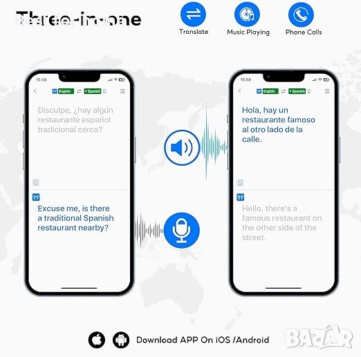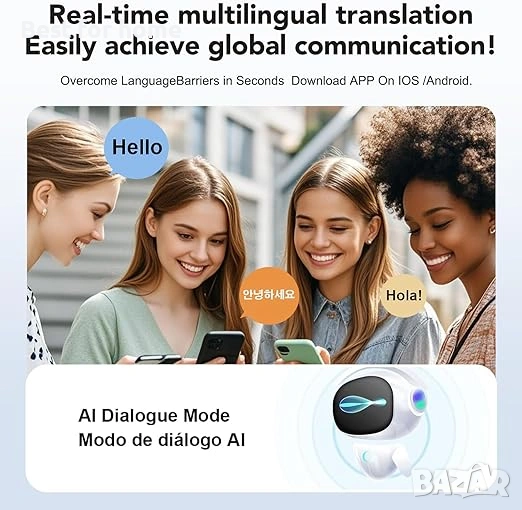 Слушалки с изкуствен интелект за превод в реално време: С основен режим на превод, режим на разговор с изкуствен интелект и разговор с двете уши, слушалките с превод интелигентно разпознават и превеждат езици в реално време. Единият човек носи слушалките, докато другият използва телефон, при щракване системата автоматично разпознава и превежда. Слушалките с превод поддържат 135 езика (достъпни чрез приложението Saymi, съвместимо с iOS/Android).