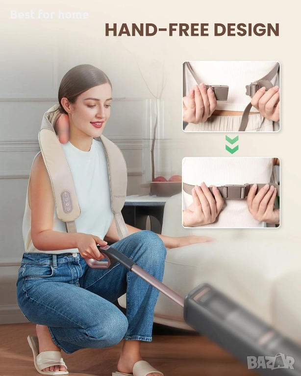 Удобен за потребителя дизайн: Масажната възглавница за врата и раменете Heycool има 2 варианта за носене: ръчно или с презрамки, което я прави подходяща за различни ситуации на употреба. Този масажор за врата е лек и има компактен дизайн.