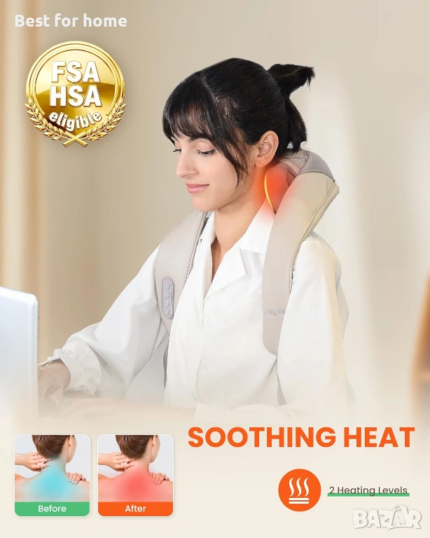 Успокояваща топлина за комфорт: Масажорът за врата и раменете Heycool осигурява успокояваща топлина за релаксация. 2 нива на нагряване са регулируеми.