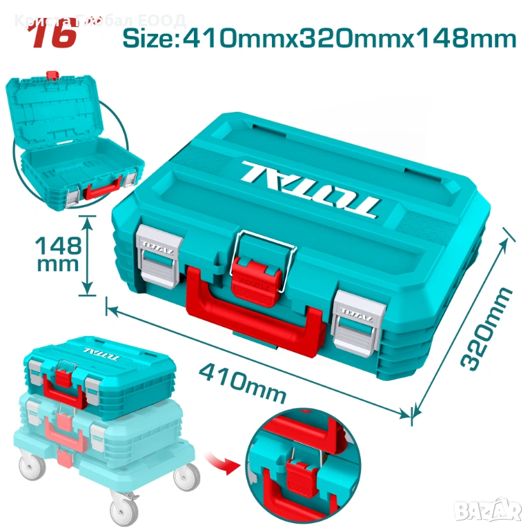Професионален удароустойчив куфар от новата модулна серия на TOTAL. Проектиран за максимално полезен обем и лесна организация, този куфар е идеалното решение за съхранение на вашето сервизно оборудване.