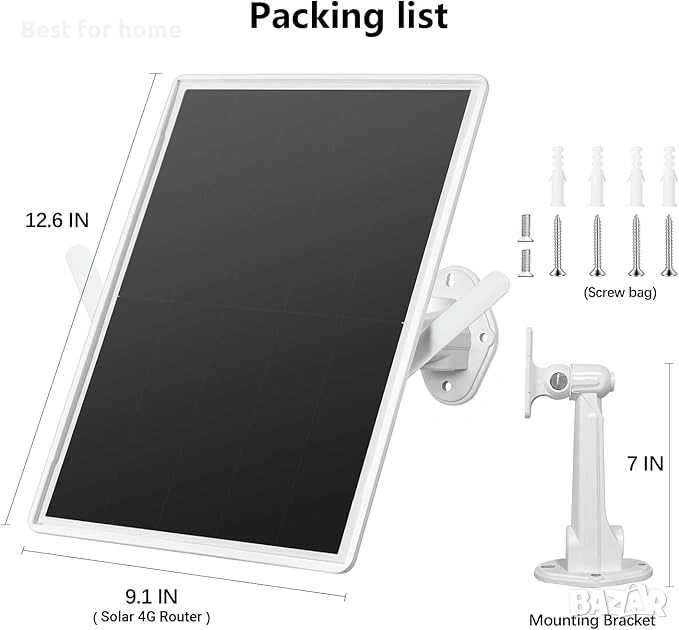 Включени компоненти Скоба, соларен външен 4G рутер, чанта с винтове, ръководство за потребителя