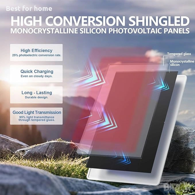 【360° регулируема и лесна настройка】:Безпроблемен монтаж за максимално поглъщане на слънчева светлина. Регулируемата скоба предлага голяма гъвкавост. Избягвайте ограниченията от кабели и я позиционирайте на осветено от слънце място.