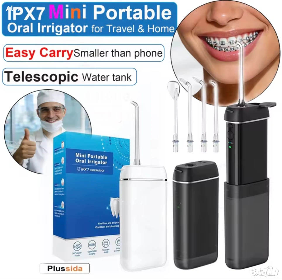 Преносим орален иригатор, 3 режима, 1200 пулс/мин, 140 мл, черен