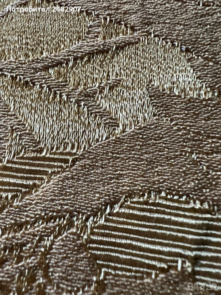 Парче златист плат от времето на соца, подходящ за перде. Размери - 160/146 см. (д/ш). Чисто ново, не е използвано.