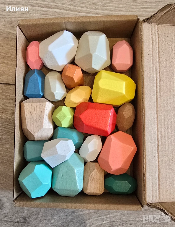 С тези цветни камъчета имате възможност да развихрите въображението си! Различните по форма фигури могат да създадат причудливи форми, докато са балансирани. Играейки, детето ще упражнява търпението, моториката и координацията си. А когато се включат и другите членове от семейството се получава още по-забавно занимание.