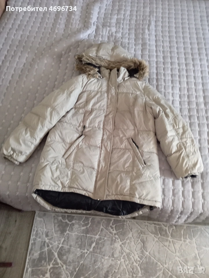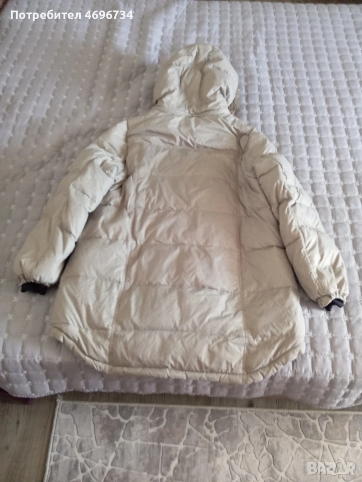 Дамско зимно яке от гъши пух в цвят бежово, много топли с гугла и джобове с цип.Идеално за зимните месеци.