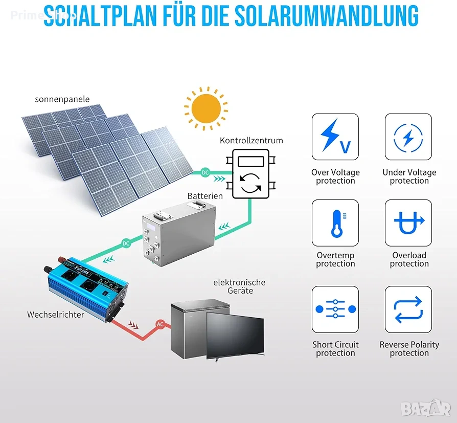 * Множество вградени защити: срещу прегряване, претоварване, свръхток, ниско напрежение, високо напрежение и късо съединение.