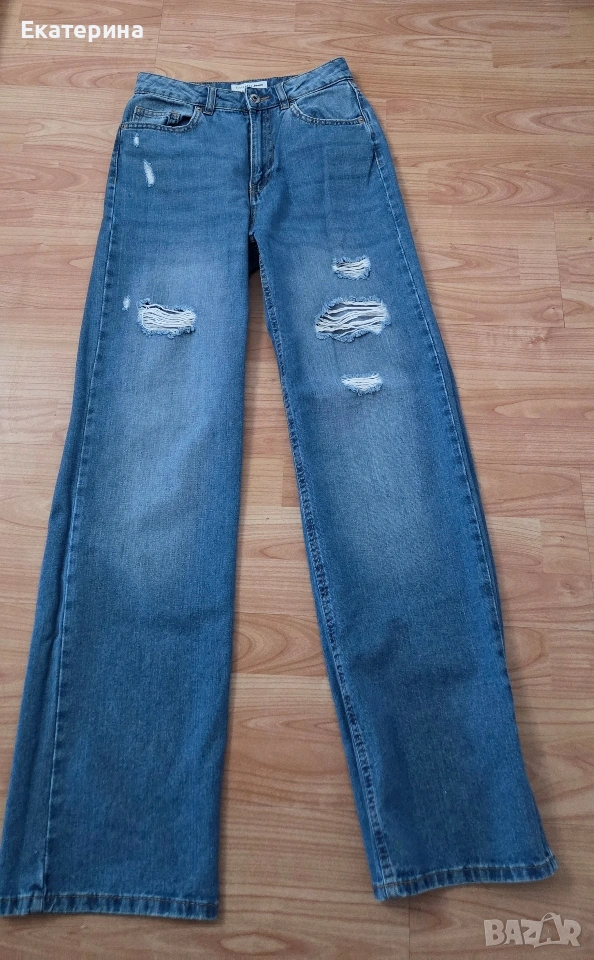 Дамски дънки, широк крачол, висока талия. Носени са 3-4 пъти. Размер S