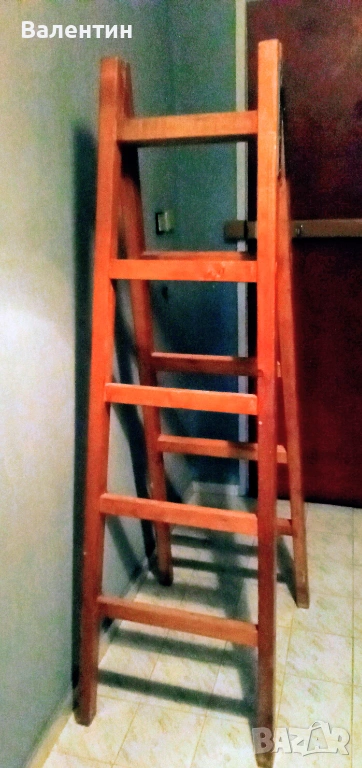 Разгъваема дървена стълба, висока 1,70 м в сгънато състояние. Много малко използвана, много стабилна и устойчива в отлично състояние без забележки. Подходяща за извършване на ремонти и като помощно средство за благоустройство на дома.