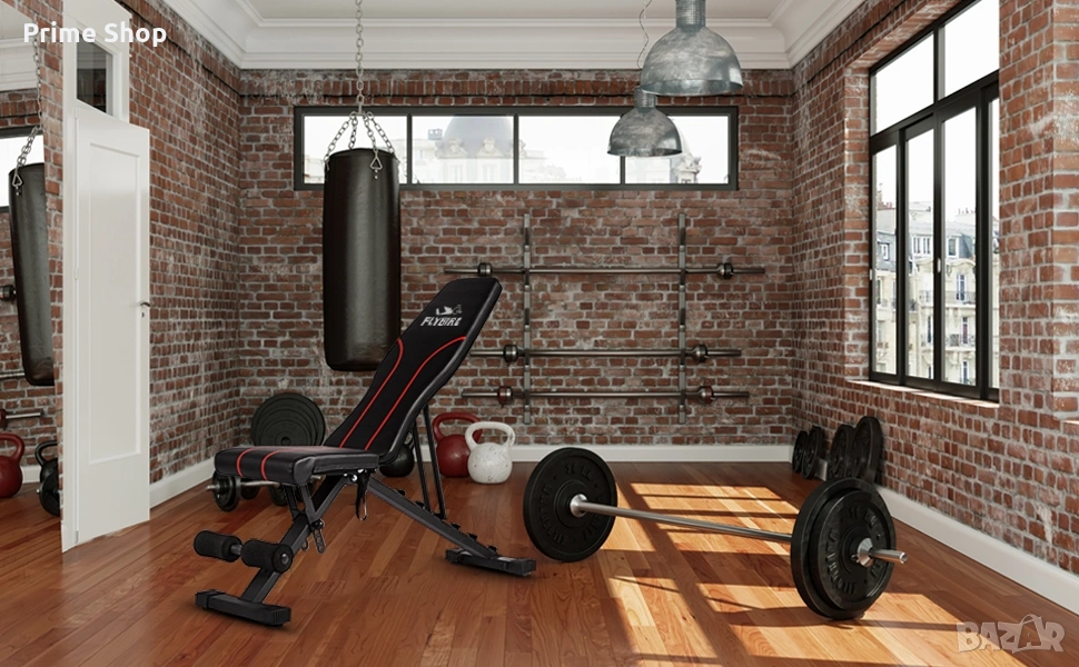 фитнес лежанка, сгъваема лежанка, FLYBIRD, регулируема пейка, фитнес оборудване, тренировка вкъщи, домашен фитнес, силова тренировка, вдигане на тежести, спортни стоки