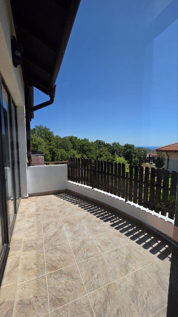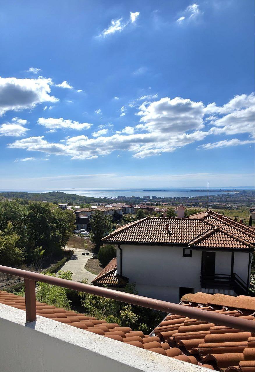 На второ ниво - уютна спалня, санитарен възел и втора тераса с красива панорамна гледка към Слънчев бряг и Несебър.