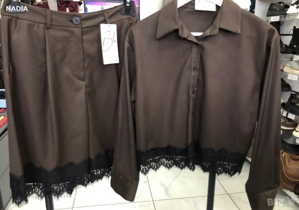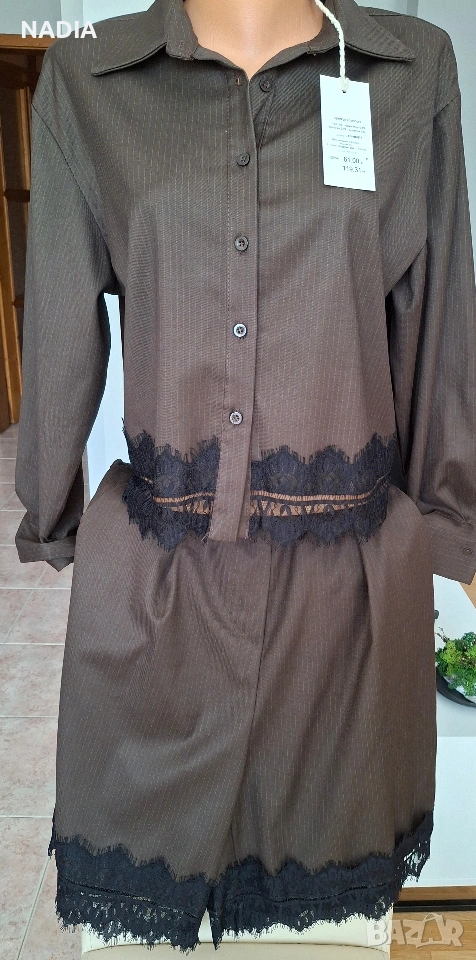 Кафяв сет риза и къс панталон → Обява 53754977