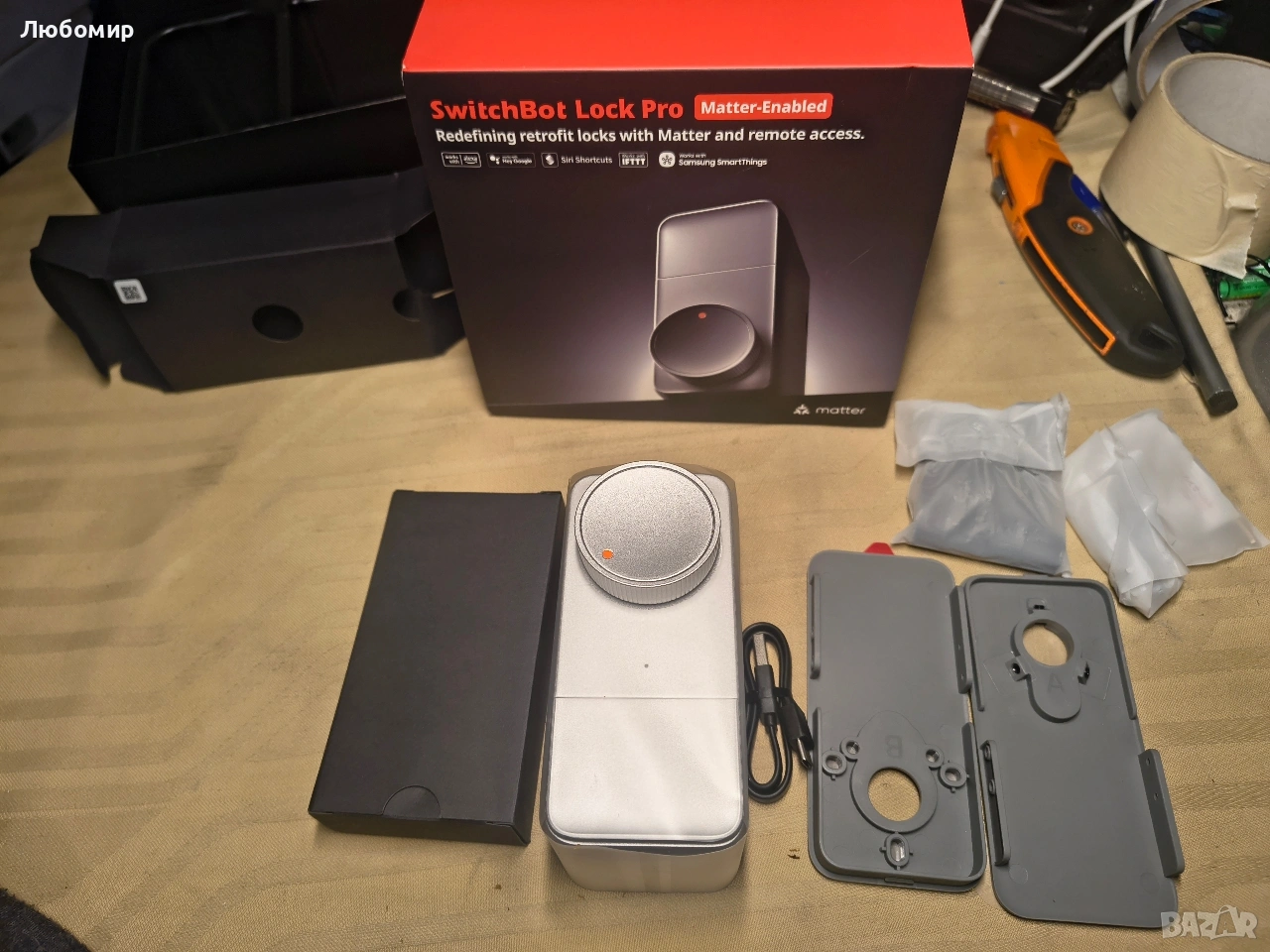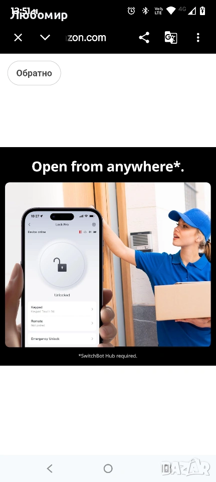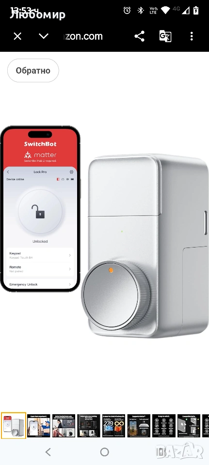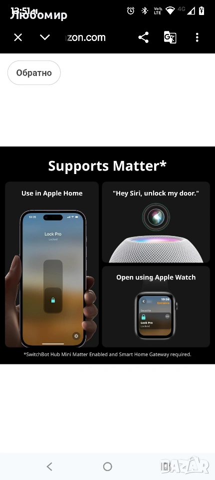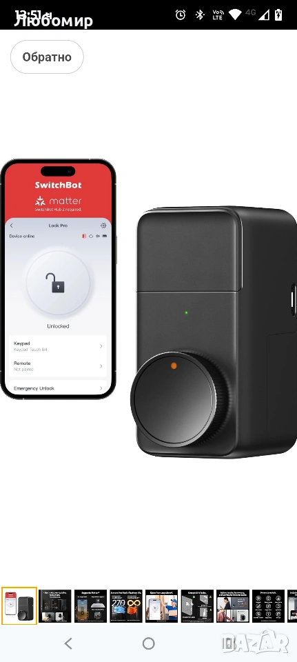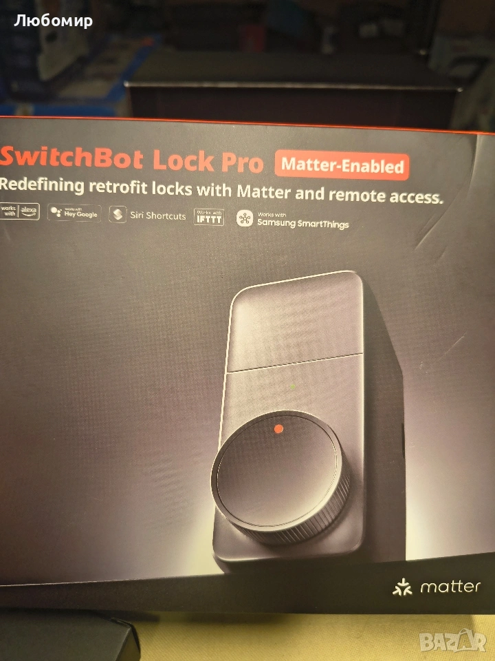 SwitchBot Smart Lock Pro безключова ключалка за входна врата, интелигентно заключване с резе, преоборудване за съществуващо резе, монтаж без пробиване за наематели, автоматично заключване, добавяне на хъб (продава се отделно) за Matter Siri, Alexa Matter и гласово управление (необходим е хъб)】 Отключете повече начини за управление на вратата си: когато е сдвоен със SwitchBot Hub 2 (продава се отделно) и използва приложението SwitchBot версия 9.17 или по-нова, SwitchBot Smart Lock Pro поддържа Matter за управление чрез iPhone и Siri. За стабилна връзка поставете хъба в обхвата на Bluetooth на Lock Pro. Lock Pro работи и с Alexa и Google Assistant за гласово управление. (Функциите за гласов асистент изискват съвместим хъб и правилна настройка.)