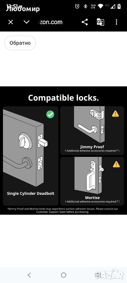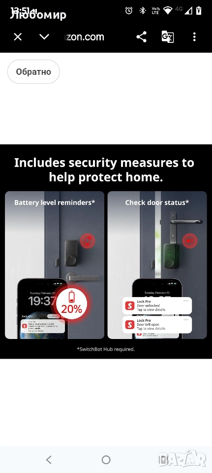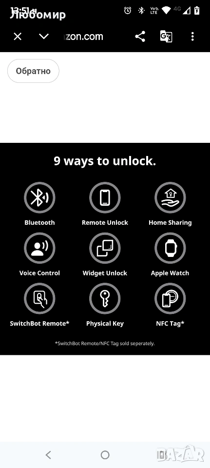 【Функции за автоматично заключване и автоматично отключване】Lock Pro поддържа автоматично заключване, за да помогне за обезопасяването на вратата ви след затваряне. Най-добрите резултати зависят от правилната инсталация, калибриране и подравняване на вратата. С приложението SwitchBot v9.4+ можете да активирате автоматичното отключване (бета версия), като използвате настройките на GPS, Bluetooth и геозона на смартфона. Bluetooth обикновено се свързва в рамките на няколко метра и може да бъде повлиян от фактори на околната среда.