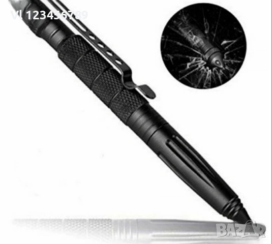 Дискретно средство за самозащита - тактическа химикалка със здрав стоманен заострен заден край с който при удар лесно се чупи автомобилно закалено стъкло.