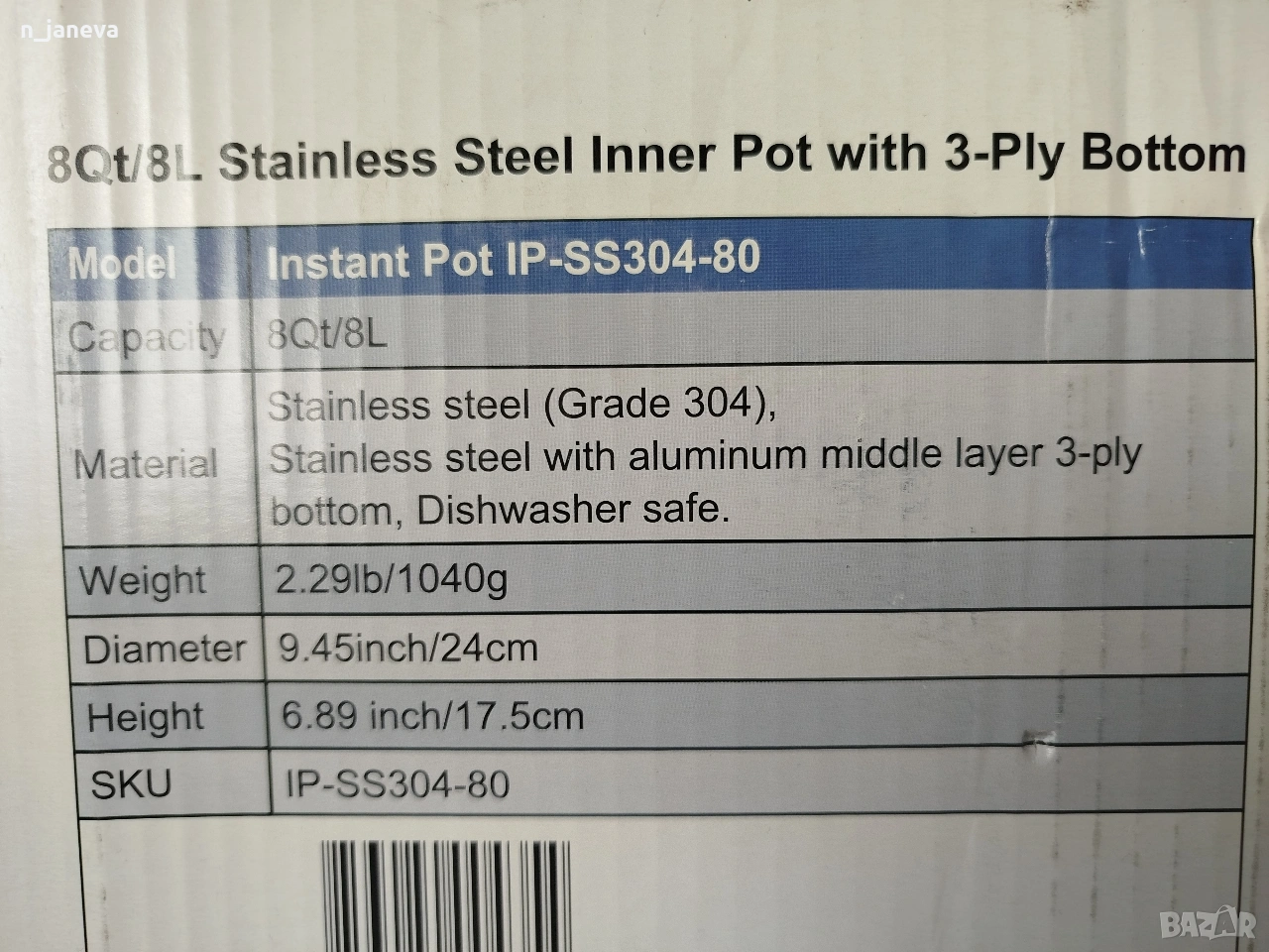 Оригиналният съд за готвене Instant Pot® е изработен от неръждаема стомана (AISI 304), без химическо покритие и 3-слойно дъно за равномерно разпределение на топлината.