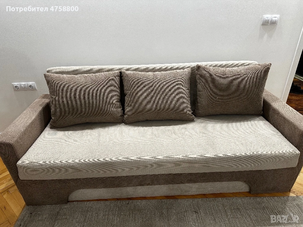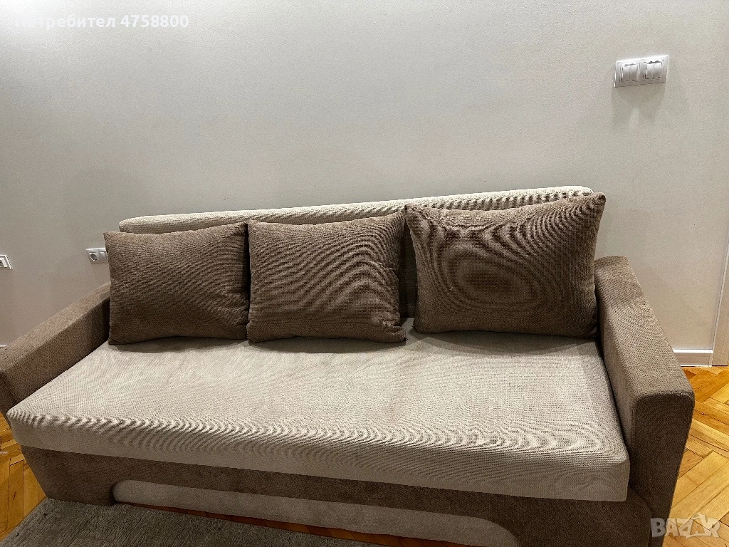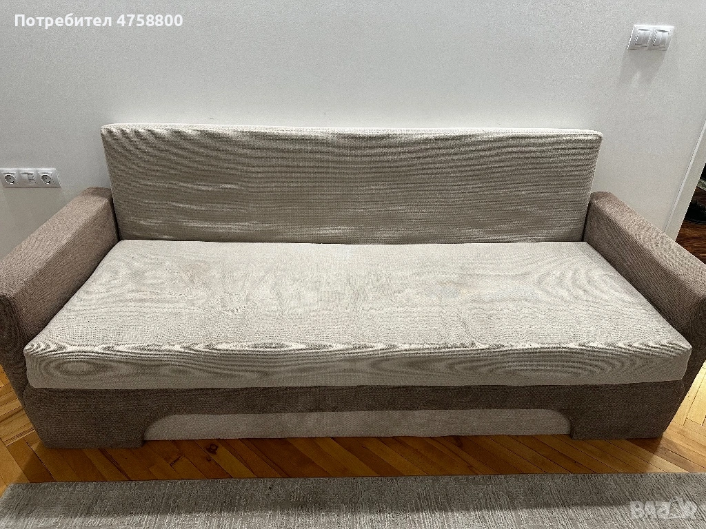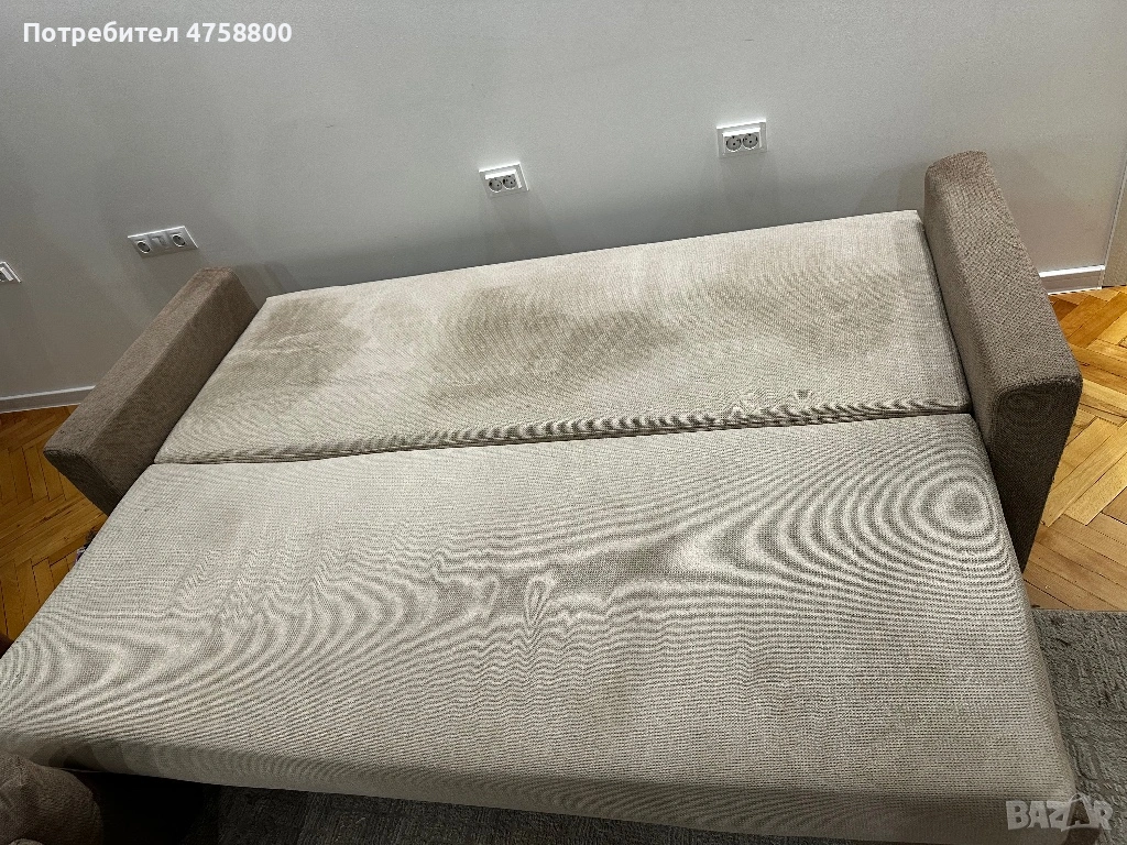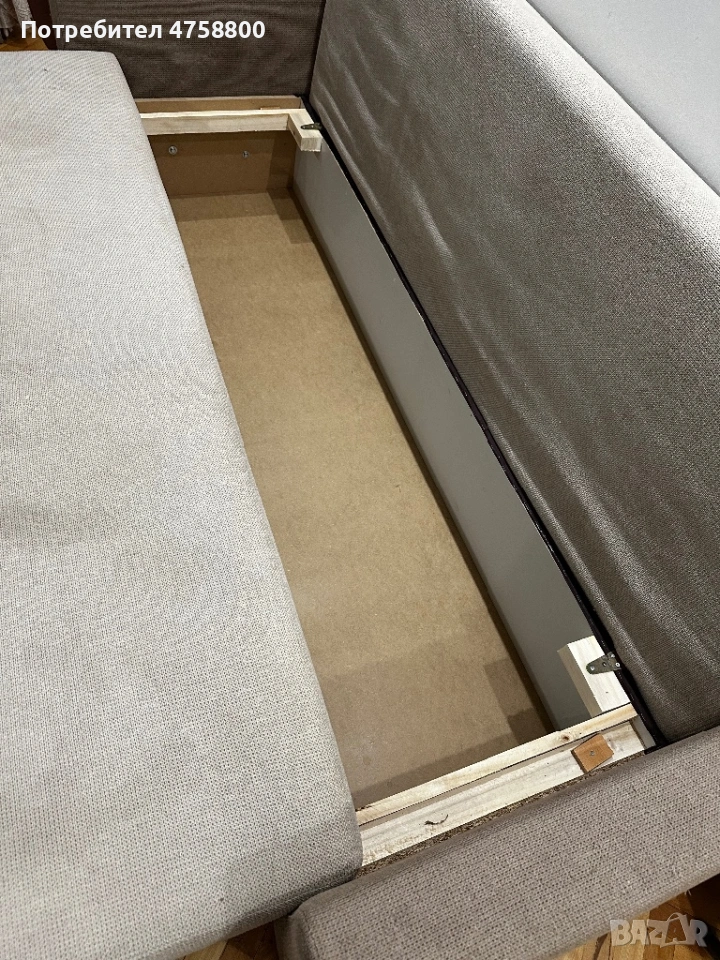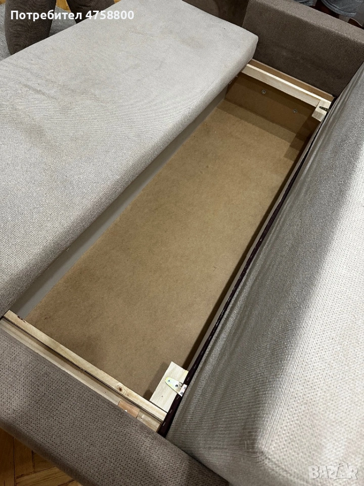 Диванът се разтяга лесно и става на голямо легло, подходящ за спане. Има и просторна ракла за съхранение.