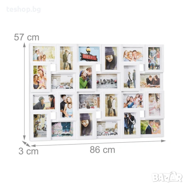 Рамка за снимки Relaxdays, 24 снимки бяла рамка за снимки Relaxdays, 24 снимки, за снимки с размер 9x13 см, вертикална и хоризонтална, ВxШ 57x85 см, бяла, 57 x 86 x 3 см