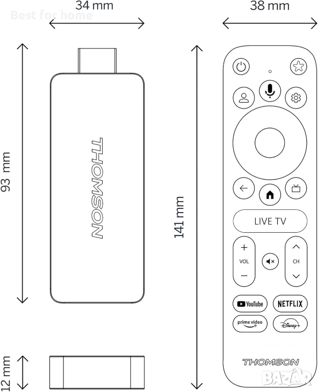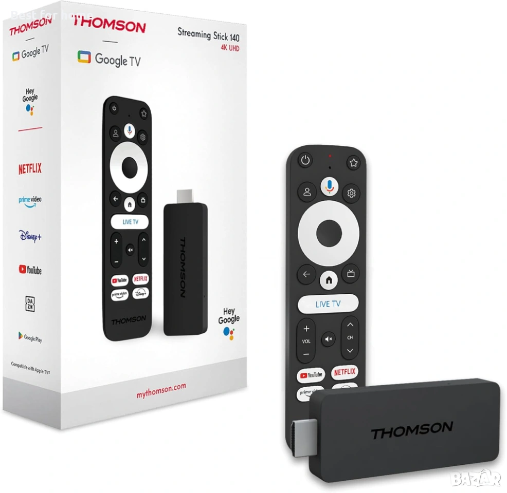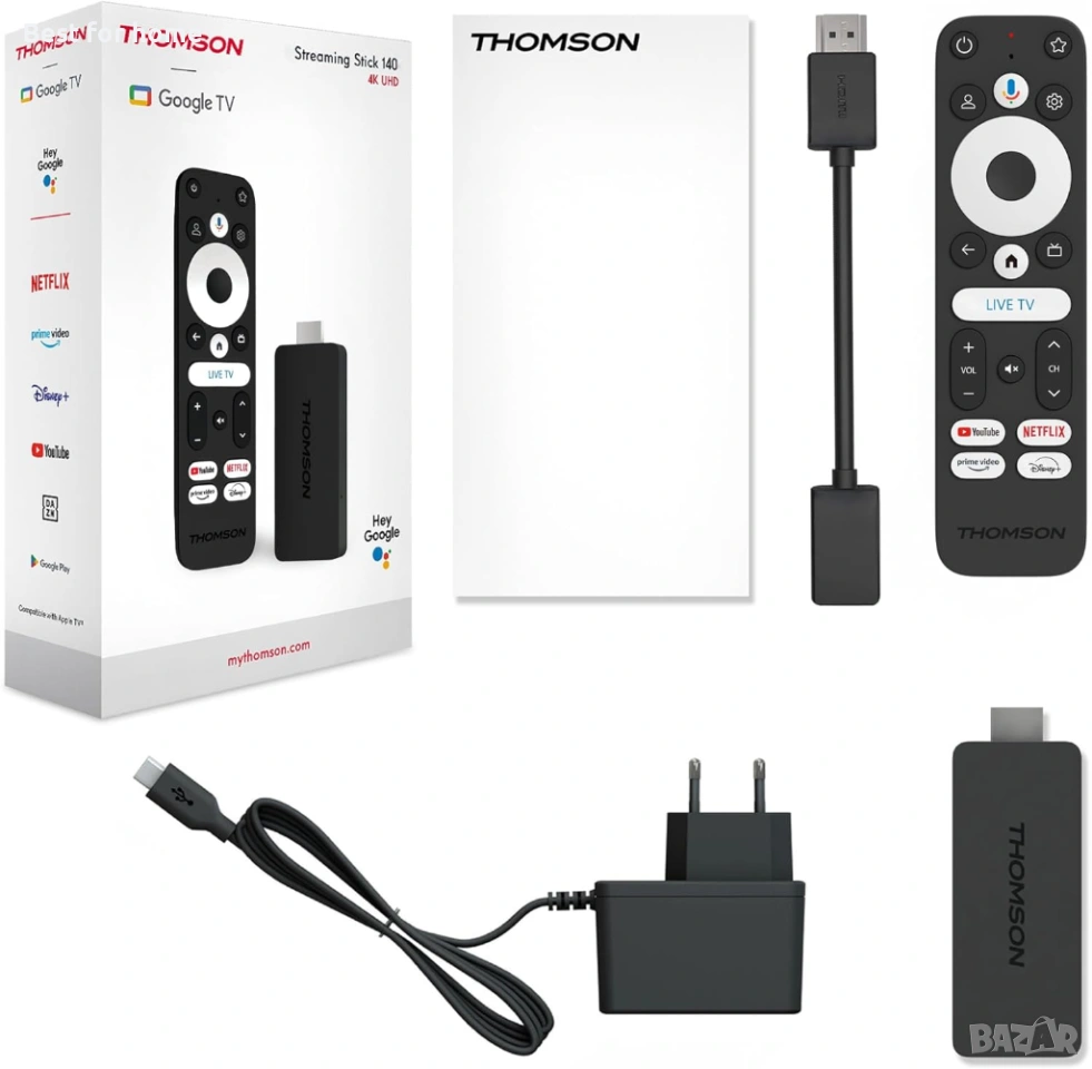 THOMSON Streaming Stick 140, Google TV, 4K UHD, Гласово управление, Google Cast