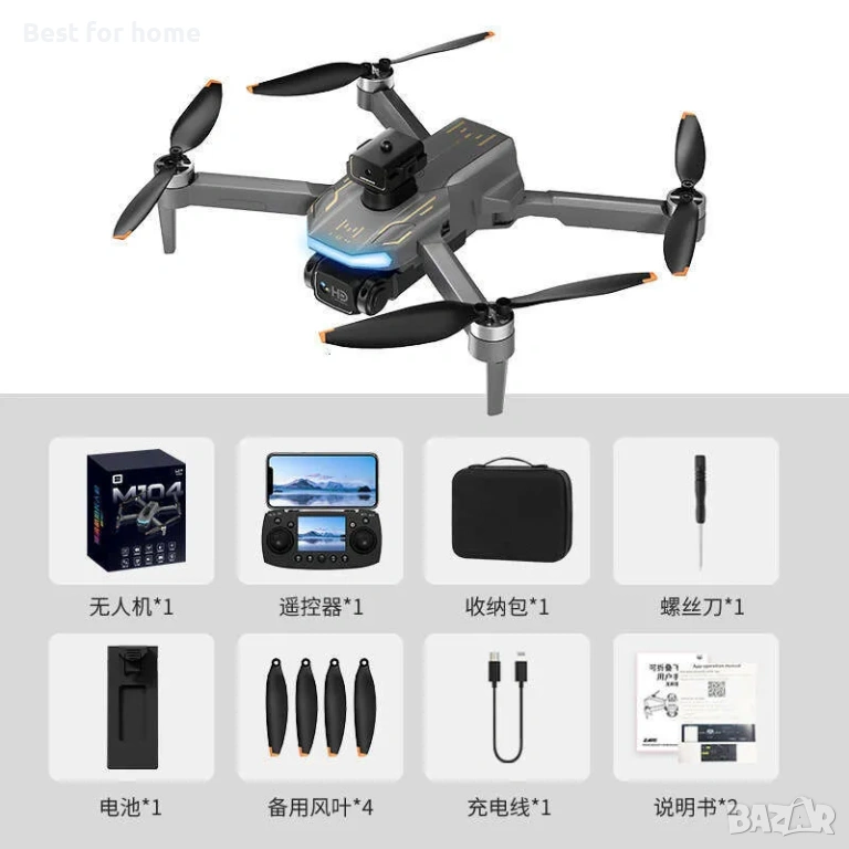 Дрон с камера M104 с екран, дистанционно управление, HD въздушен дрон, безчетков контрол на препятствията