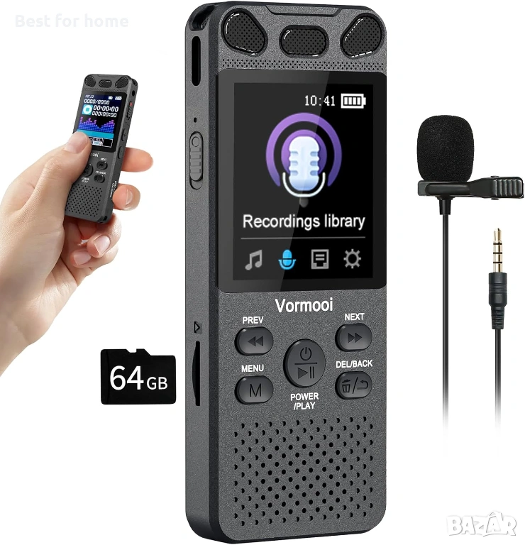 УНИКАЛНА ФУНКЦИЯ - ПО-БОГАТИ ИЗТОЧНИЦИ ЗА ЗАПИС🎙️: Vormooi реализира големия пробив, разширявайки традиционния в индустрията запис с един вграден микрофон до 3 режима на запис: запис с микрофон/линеен вход/външен микрофон, които могат да се превключват според различните сценарии на запис. Искате да заснемате вокалите по-точно по време на интервюта? Използвайте включения 3,5 мм професионален външен микрофон!