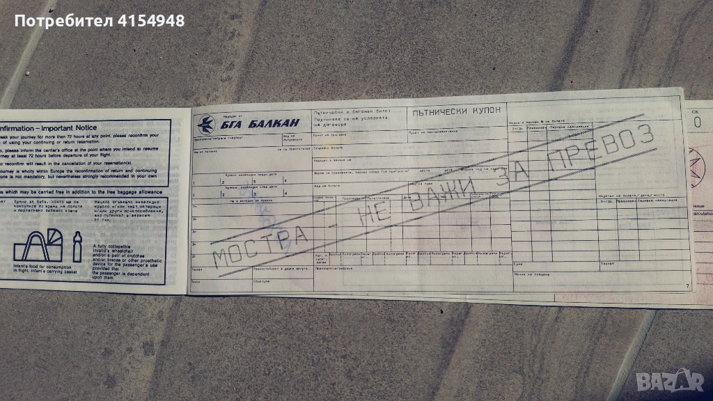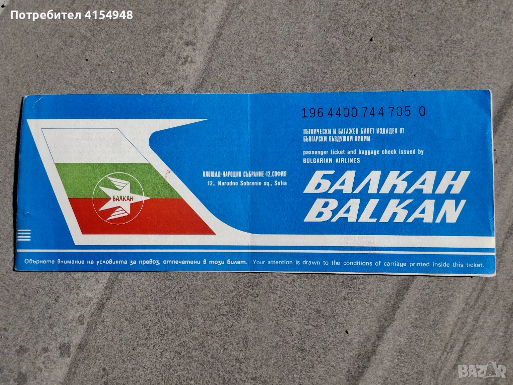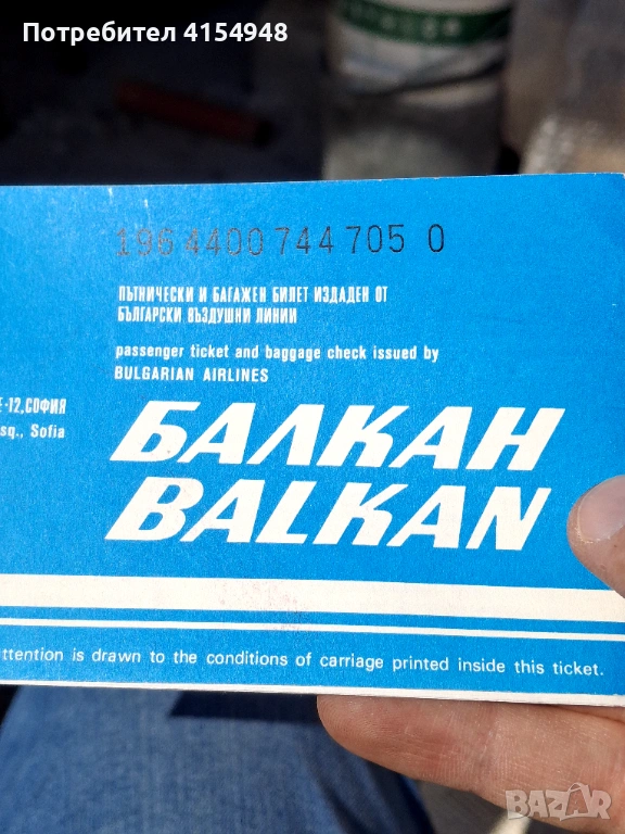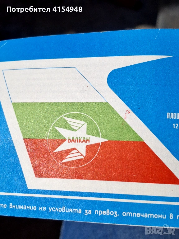 Автентичен самолетен Билет - Балкан → Обява 53756387