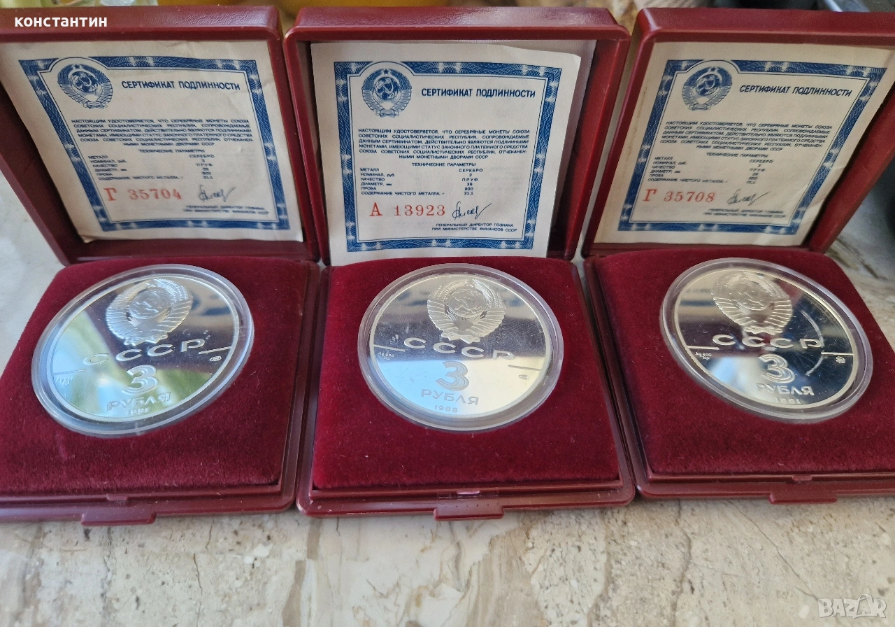 сребърни 3 рубли 1988г и 1991г → Обява 53757081