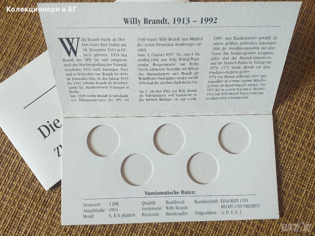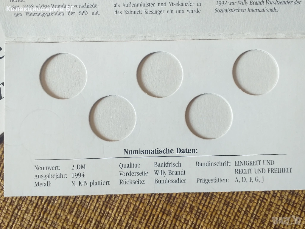 ХОЛДЕР ЗА СЪХРАНЕНИЕ НА 5 МОНЕТИ ОТ 2 МАРКИ ГЕРМАНИЯ /виж описанието/ → Обява 53757097