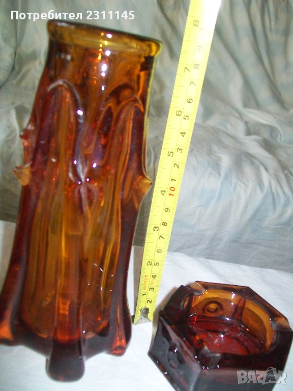 - ваза с пепелник, червено-кафяво стъкло. Без забележки. Цена 10€