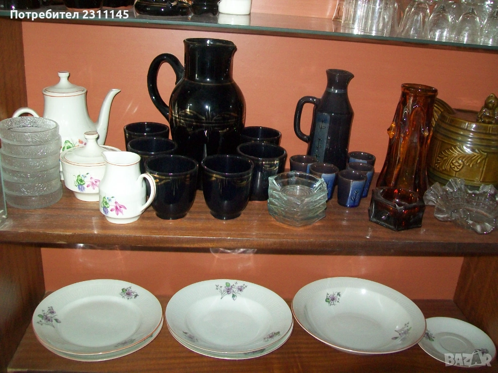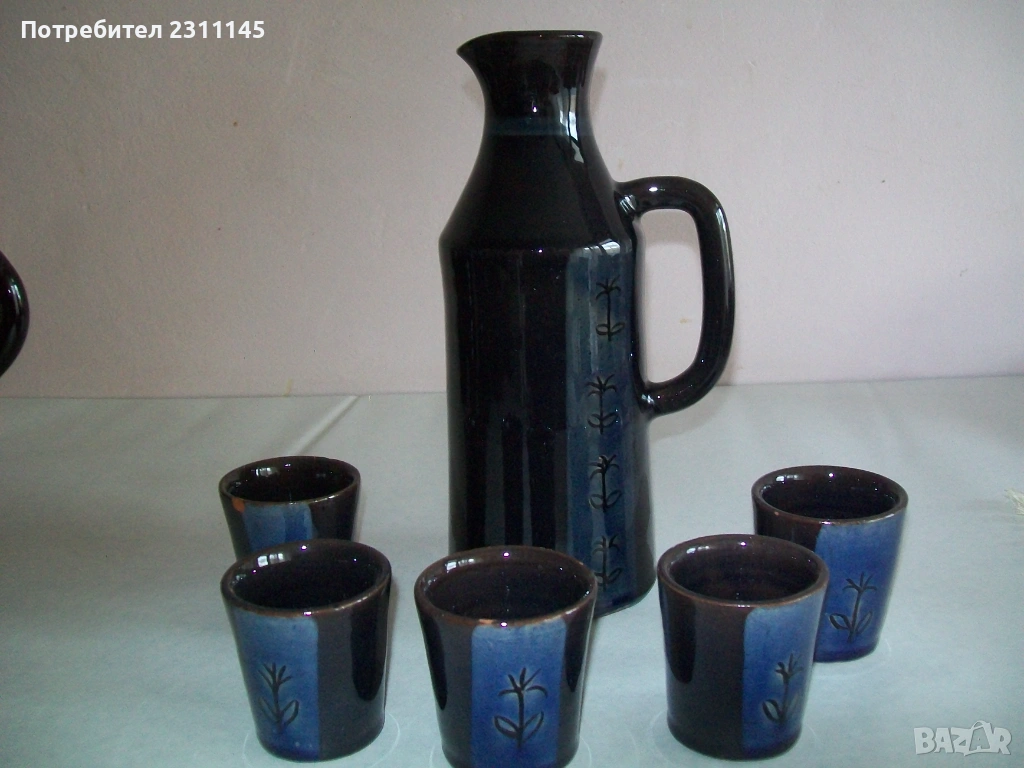 - Сервиз за вино. Керамика. Кана с 6 чаши. Почти неползван. Без етикет, но много запазен, без забележки. Цвят - много тъмно син, не е черен. Цена 10€