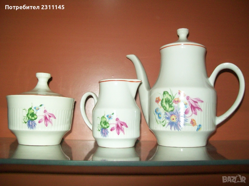 - сет чайник, захарница, каничка за мляко. Без забележки. цена 10€