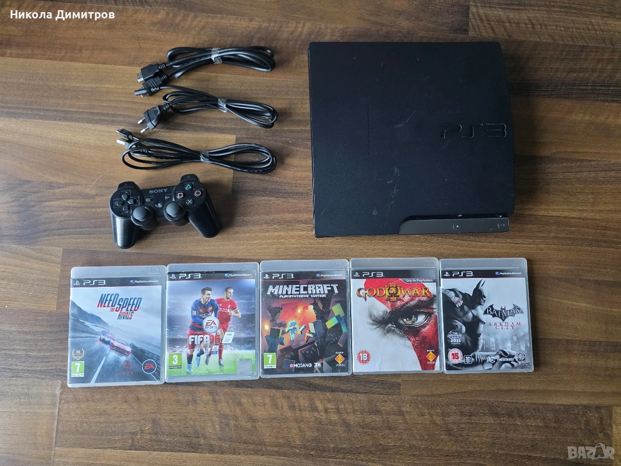 Sony PlayStation 3 (PS3) Super Slim + Оригинален контролер и 5 игри