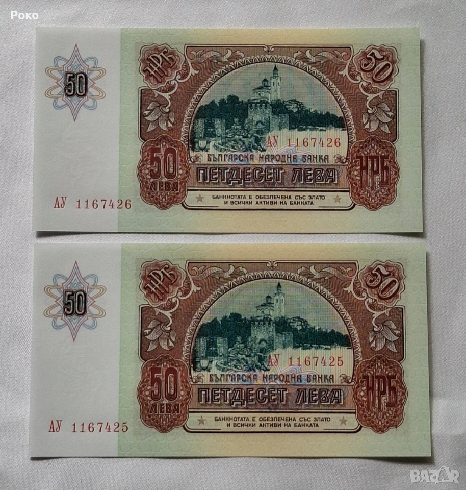 Продавам Непрегъвани Банкноти (UNC) 50лв 1990г , снимка 1 - Нумизматика и бонистика - 53757673 Продавам Непрегъвани Банкноти (UNC) 50лв 1990г , снимка 2 - Нумизматика и бонистика - 53757673 1/2