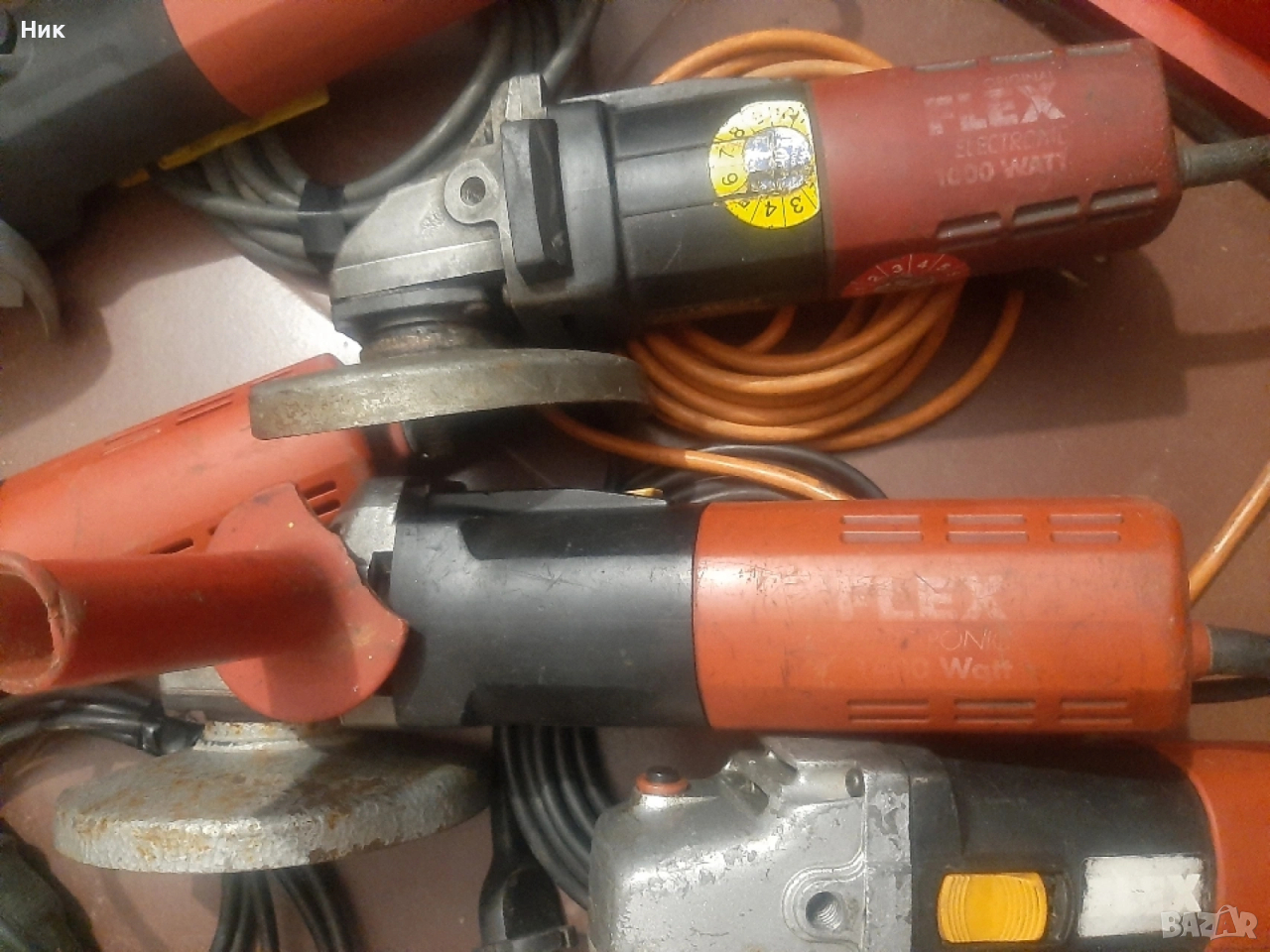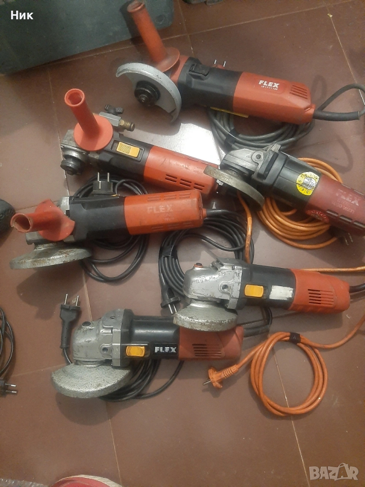 Ъглошлайфи и машина за водно шлайфане FLEX. Всички машини работят идеално Цени: Ъглошлайф 800w,два броя-80лв за брой-ЕДИН ОСТАНА Ъгл.1000w-100лв Ъгл.1400w,L1719FR-160лв Ъгл. 1700w,LB 17-11 125,плавен старт-280лв Машина за водно шлайфане-380лв-НЕ Е НАЛИЧНА