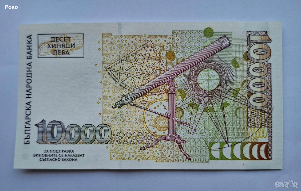 Продавам Непрегъвана Банкнота (UNC) 10,000лв 1997г → Обява 53757710