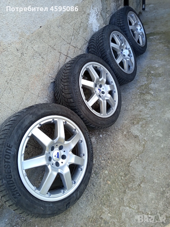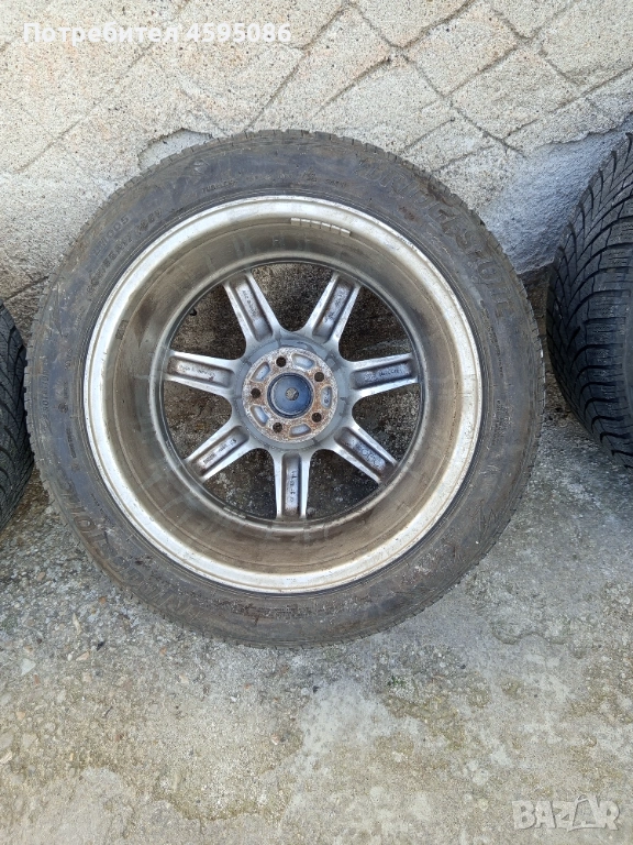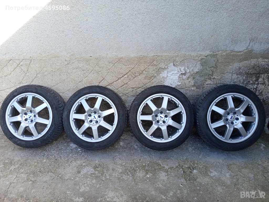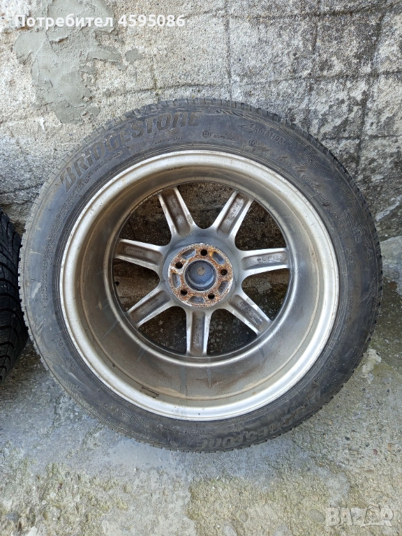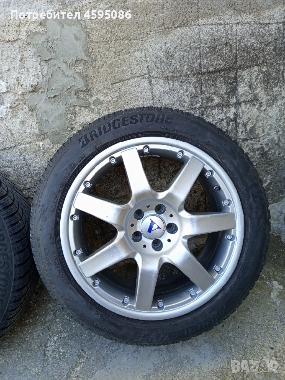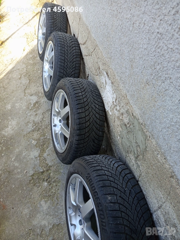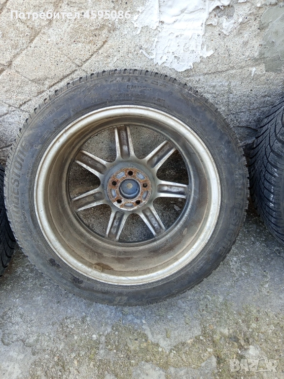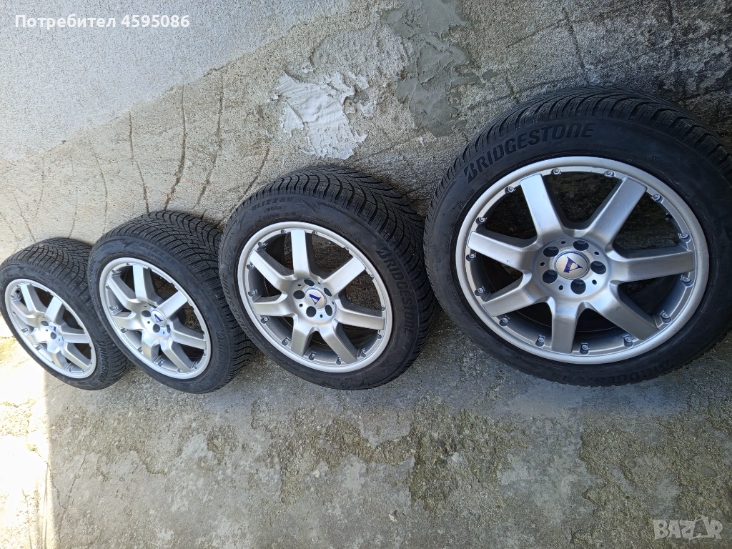 Джантите са оригинални,нямат кривини и заварки.17 цола 5х100 4x8j et35 ц.о. 63.4 с втулки към 57.1 , метални вентили.Гумите са доста добри Bridgestone Blizzak 205/55/17 dot1823 без цепнатини и балони.Цената е в лв.Може и по отделно само джанти 350лв , само гуми 150лв.Лично предаване.