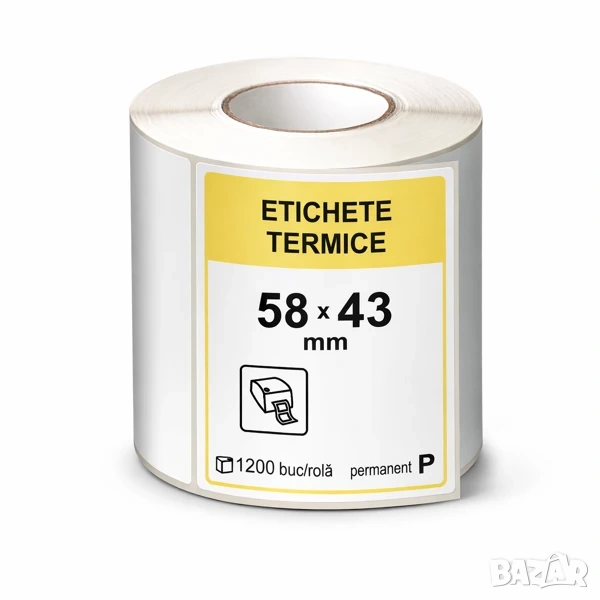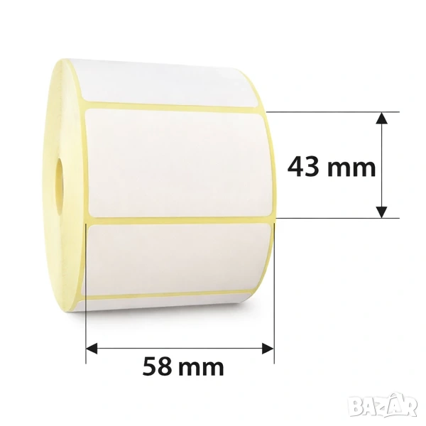 • 58 × 43 мм – 1200 етикета на ролка