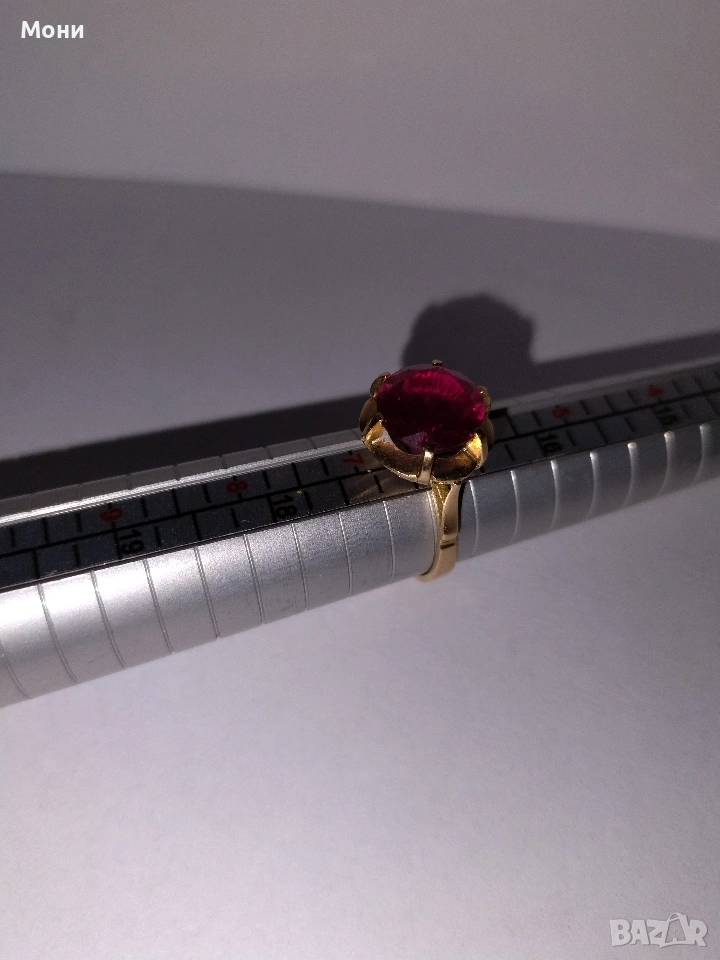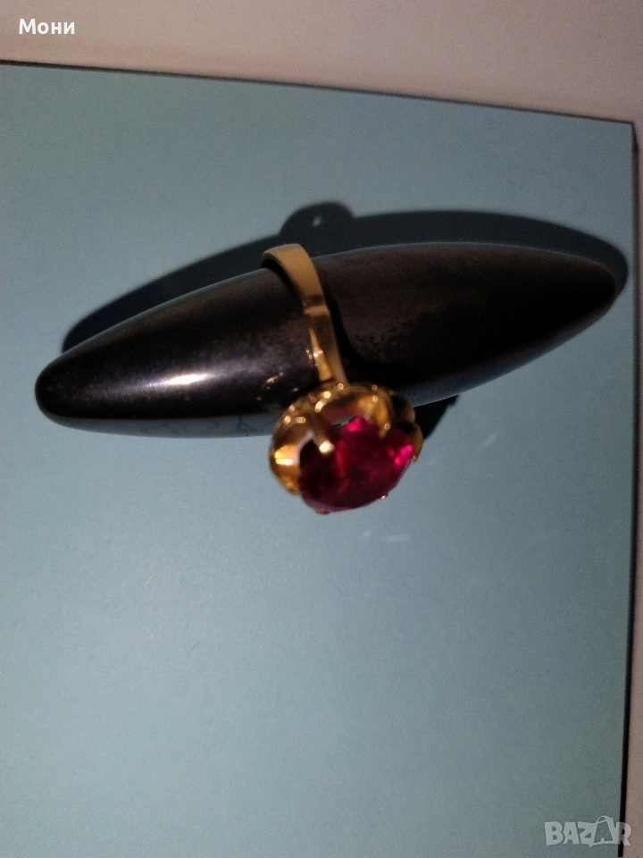 Златен пръстен с червен камък. Тегло 4.30 гр. Размер 53