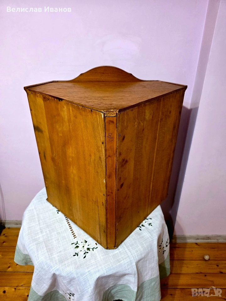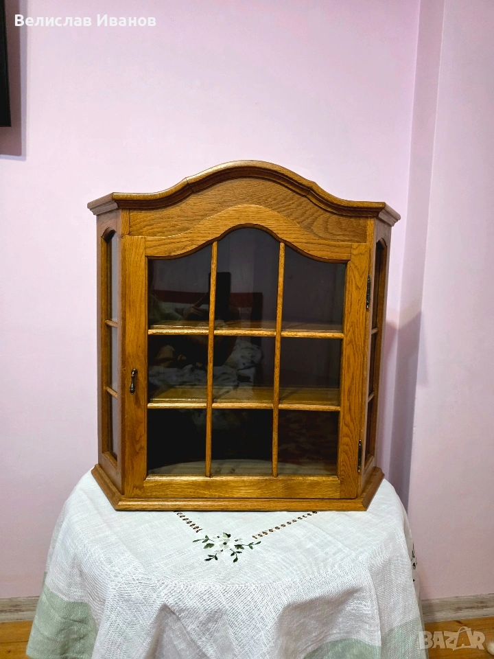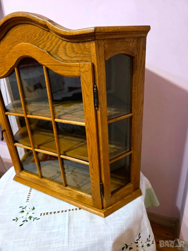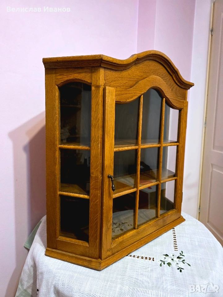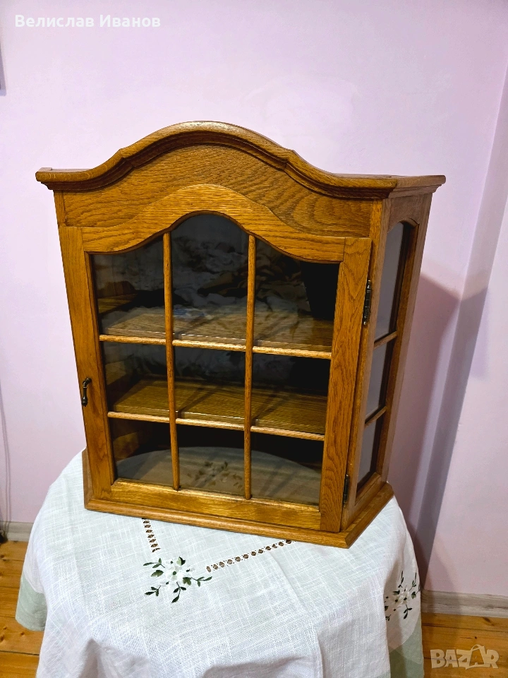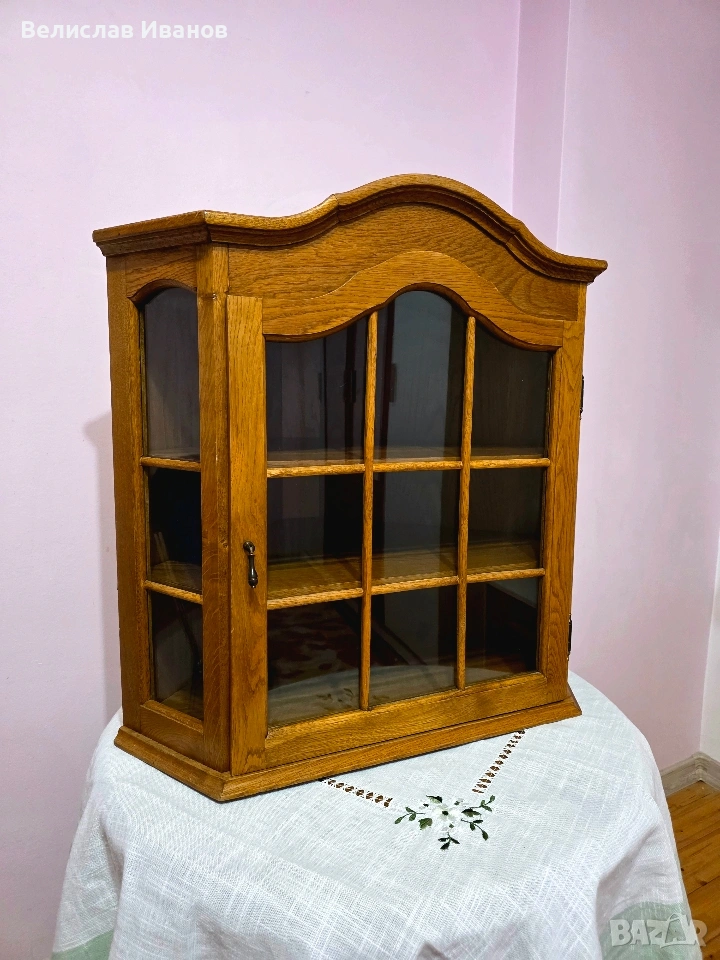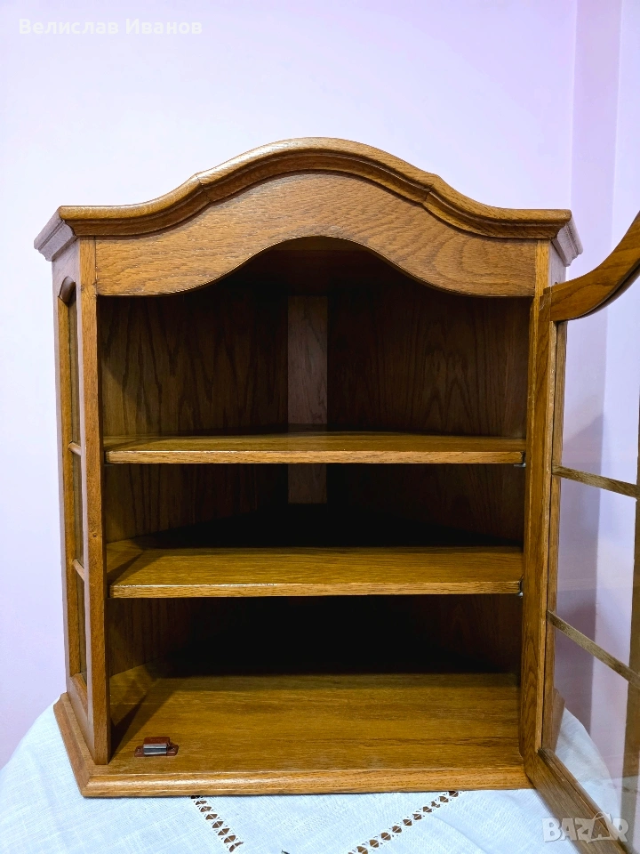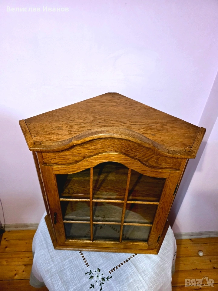 Винтидж дъбова витрина за стена (ъглова) от масивно дърво. Перфектно състояние. → Обява 53757911