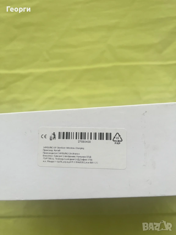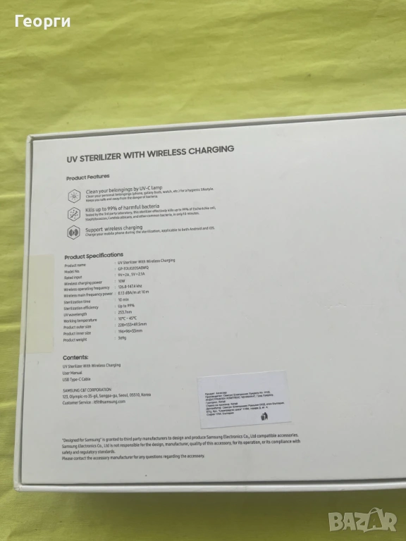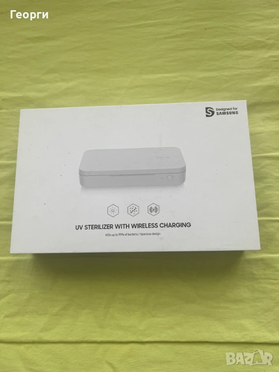 Продавам Samsung UV стерилизатор с безжично зареждане, нов и фабрично запечатан.