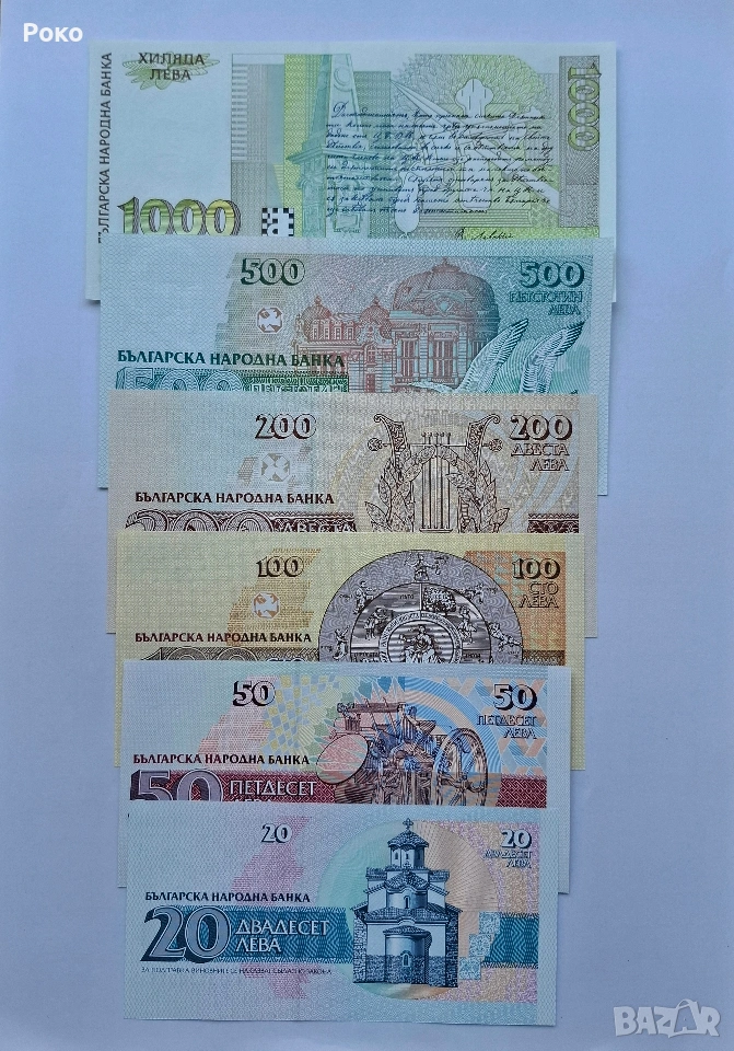 Лот от Непрегъвани Банкноти Оригинал (UNC) 6 бр . България. 1991г - 1994г година. → Обява 53758250