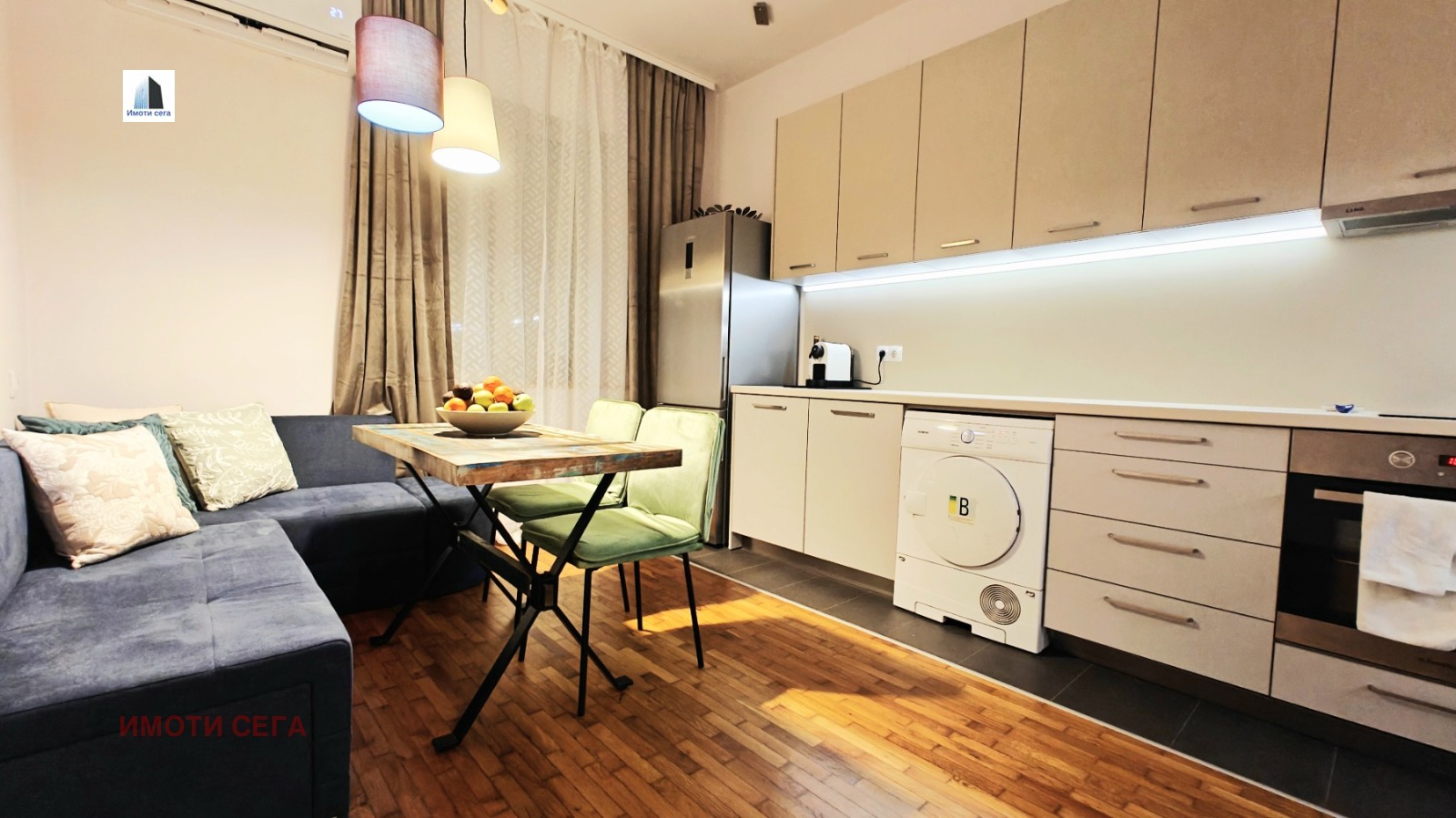 . Светла дневна с кухненски бокс, оборудвана с разтегателен диван