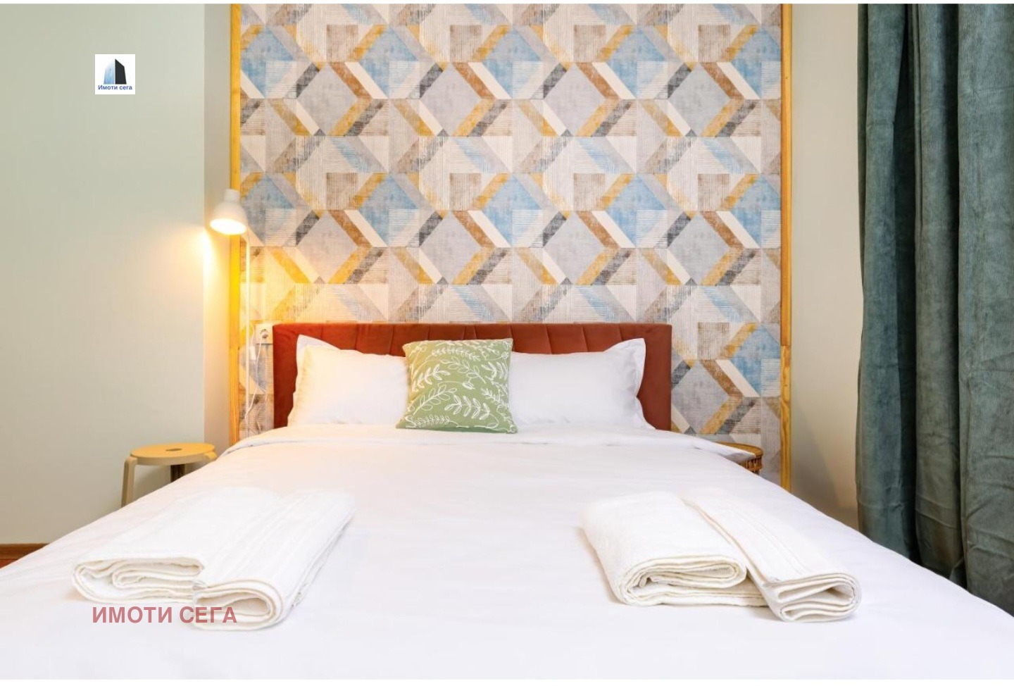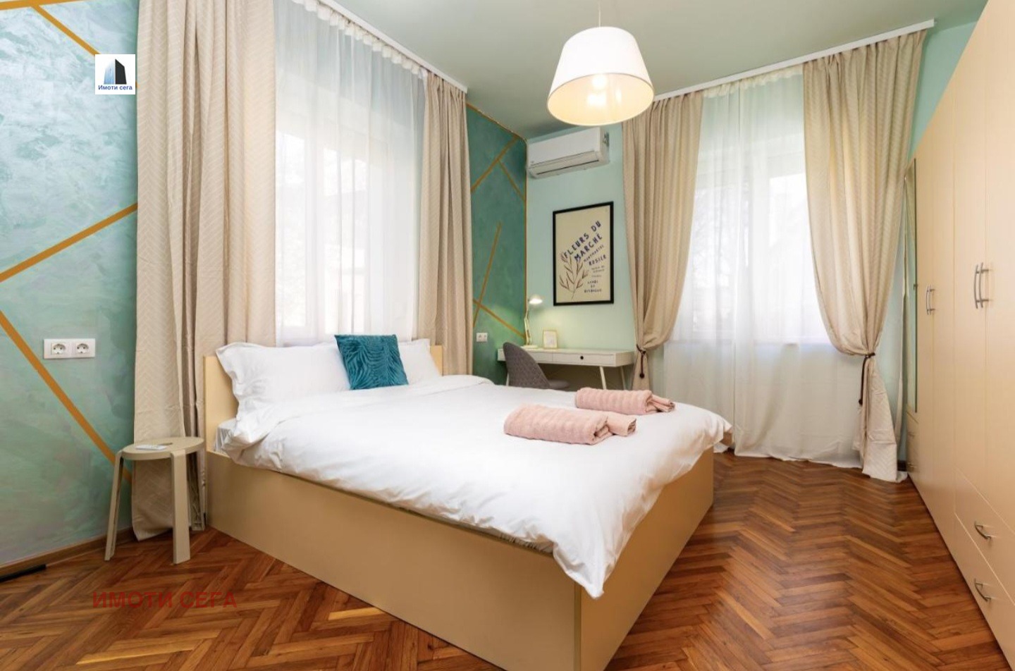 . Голяма спалня с обособен гардеробен кът, разполагаща с голяма двойна спалня и допълнителен разтегателен диван за двама души