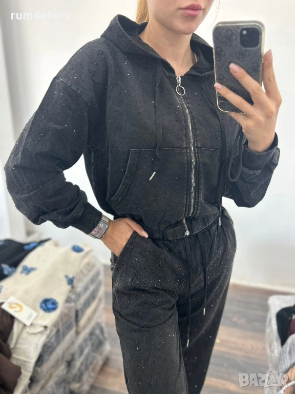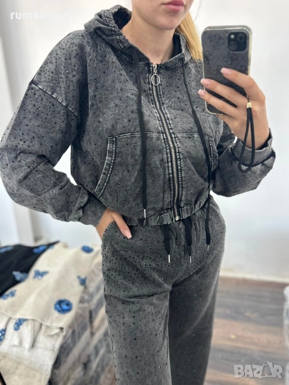 Ежедневен комплект от варен памук с камъчета. СМ и МЛ . Налично с късо и с дълго горнище