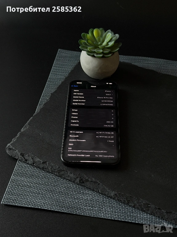 Здравейте! Предлагам iPhone 16 Pro Max 256GB (Black Titanium). Закупен на 29.08.2025 година от iStation (оставаща гаранция до 29.08.2027г.). Устройството е фабрично отключено към всички мобилни оператори и iCloud. Европейска версия със слот за сим карта.