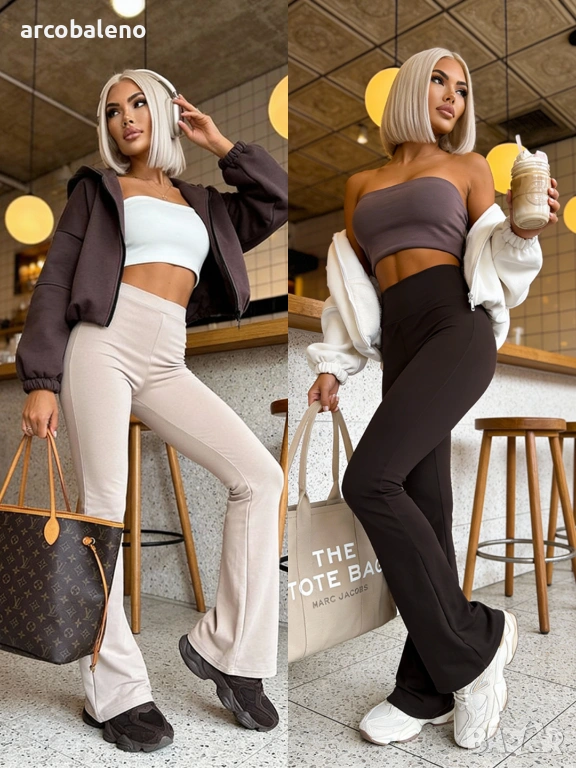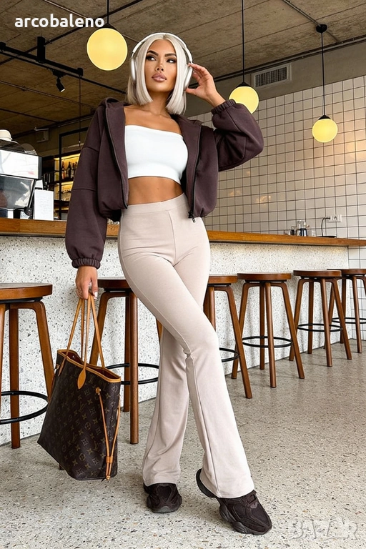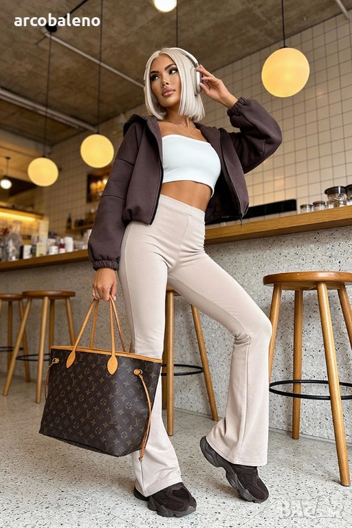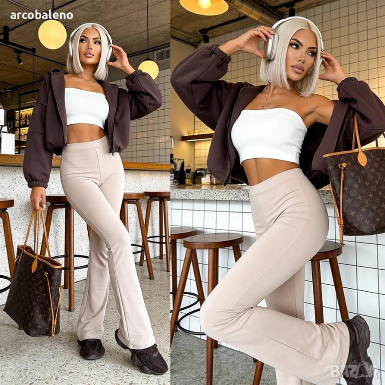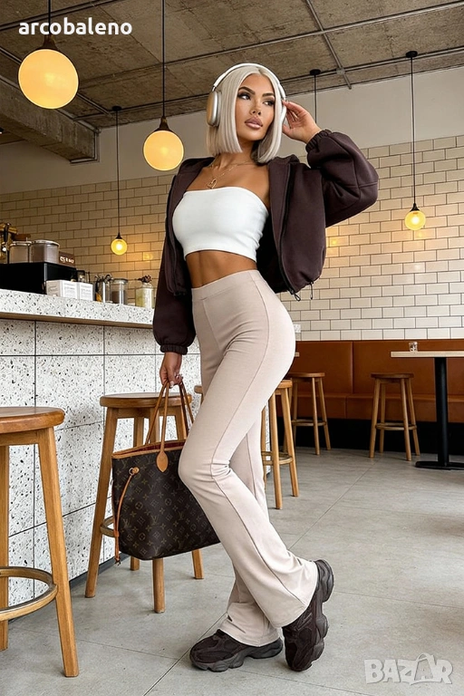 Тези панталони са изработени от изключително мека, първокласна вискозна материя. Кройката им оформя красиво фигурата – разкроените крачоли красиво ги удължават , докато еластичният материал се адаптира към всяка фигура, подчертавайки женствените извивки.
