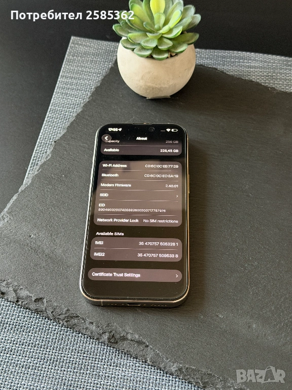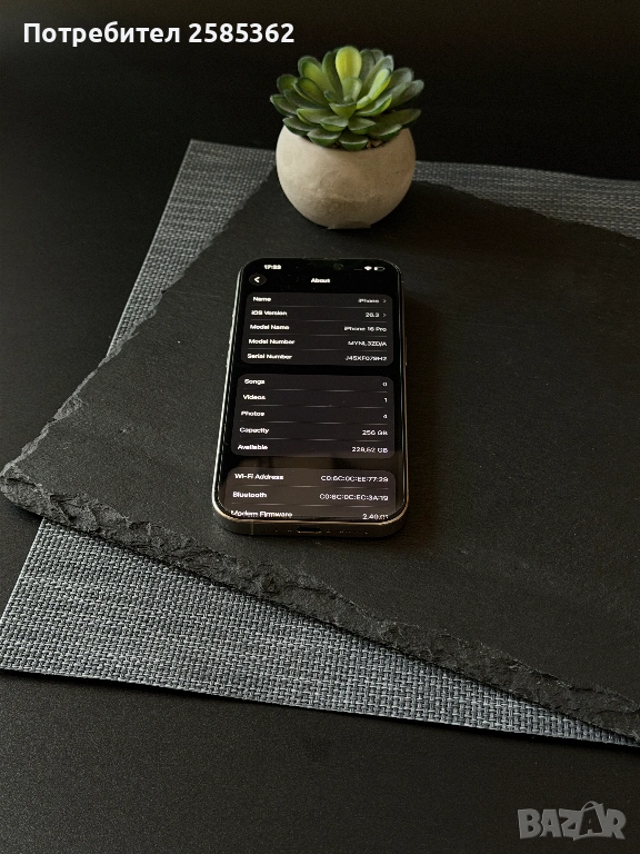 Здравейте! Предлагам iPhone 16 Pro 256GB (Natural Titanium). Устройството е фабрично отключено към всички мобилни оператори и iCloud. Европейска версия със слот за сим карта.